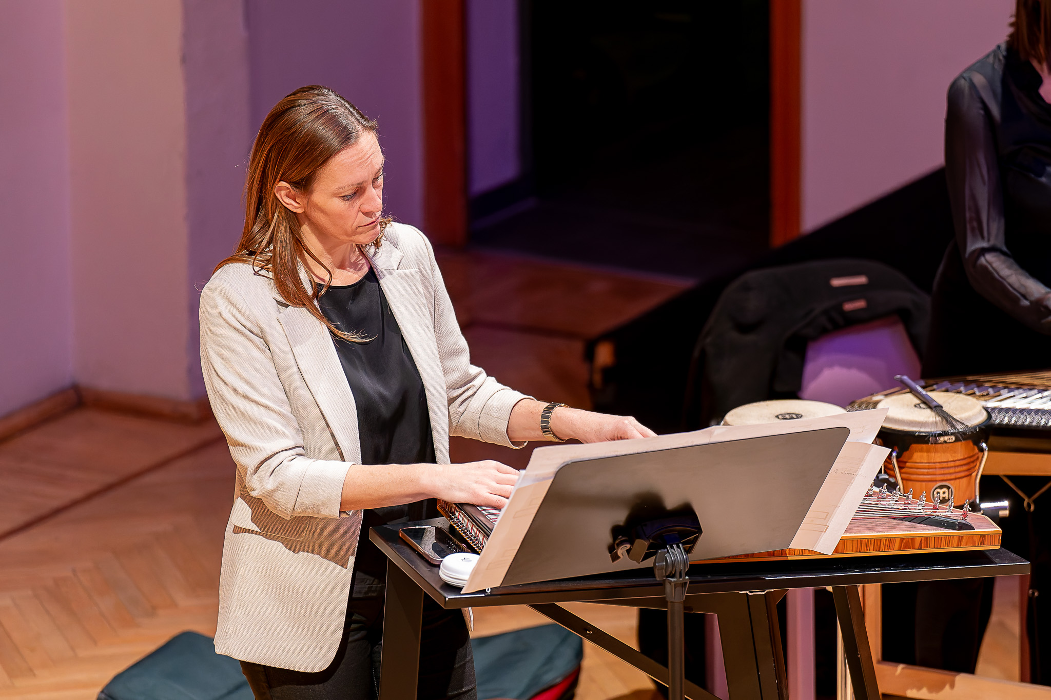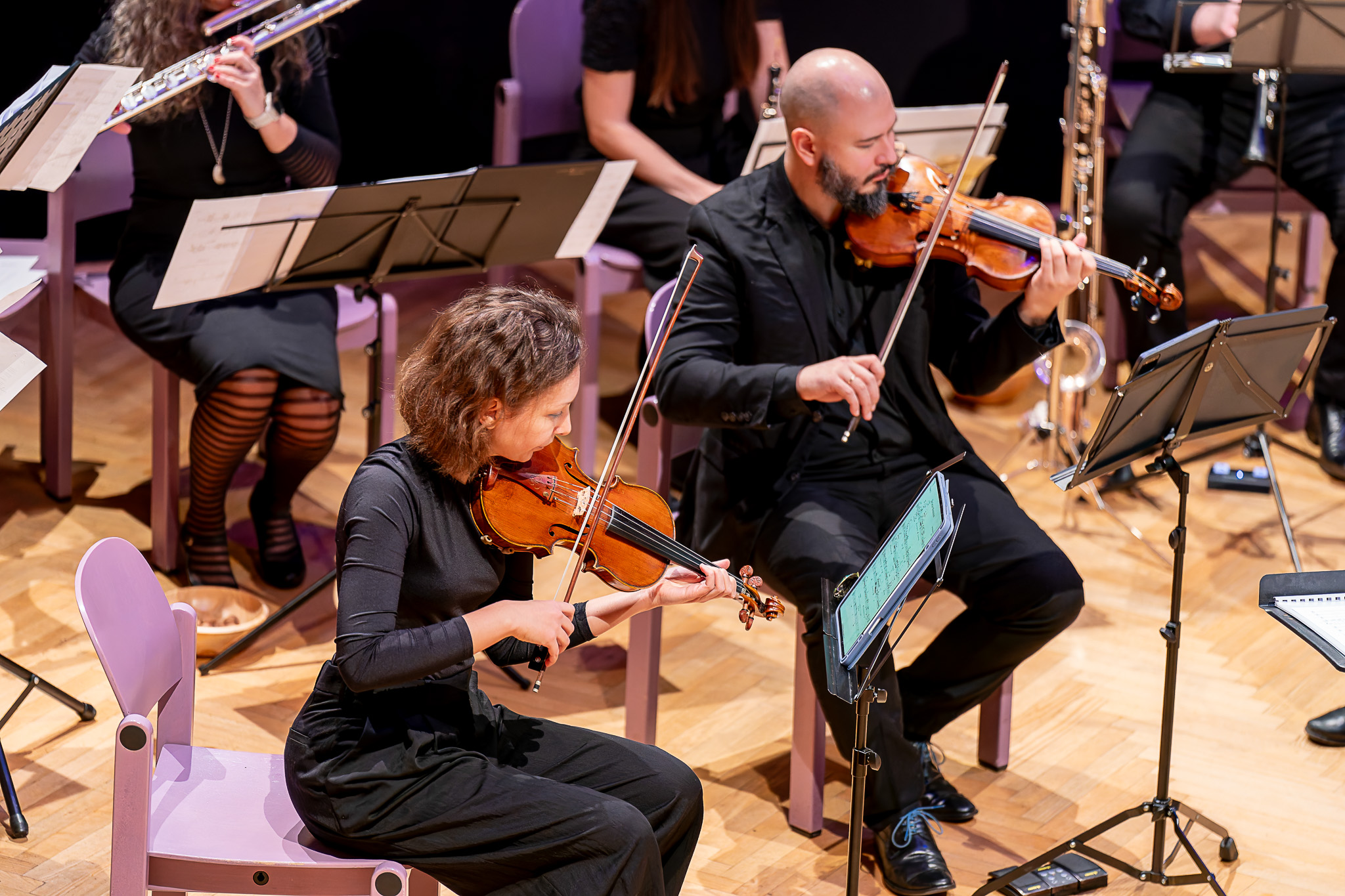 Das Programm spannte einen weiten Bogen durch unterschiedliche ästhetische Positionen der Neuen Musik. Den Auftakt bildete Anna Skladannayas Der letzte Mondschein, das mit feinen klanglichen Schattierungen und poetischer Zurückhaltung eine dichte Atmosphäre schuf. Es folgte Relief von Alexandra Karastoyanova-Hermentin, ein Werk von plastischer Klanggestaltung und markanten Kontrasten.