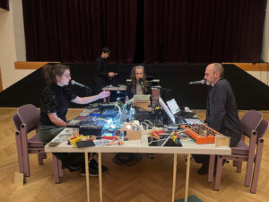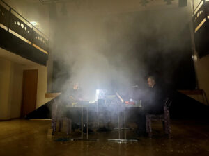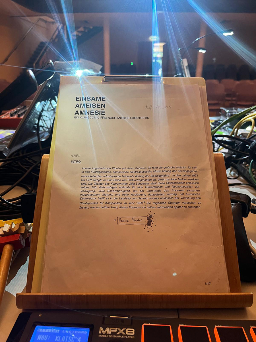 Im Laufe dieses Konzertabends wuchs eine beindruckende Lichtbühnenshow hervor. Nikolaos Zachiariadis (abseits im eigens für ihn gesperrten Obergeschoß) begleitete er einfühlsam die Darbietungen & Sprachspiele von Natascha Gangl, Maja Osojnik und Matja Schellander mit einer mitreißenden Lichtbühnenshow. Irgendwann im Laufe des Abends spürte jeder im Publikum die Ameisen…