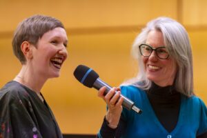 Die zwischen den Werken geführten Interviews erwiesen sich als besonders anregend. Katharina Roth verstand es mit einer charmanten und offenen Art, Einblicke in die Ursprünge ihres Komponierens sowie in die Entstehung ihrer Werke zu geben, wodurch sich für das Publikum zusätzliche Hörperspektiven eröffneten.